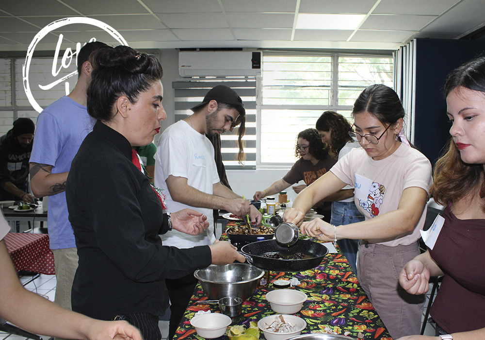 Entre las recetas preparamos tacos de tripa de setas, menudo de hongos, tacos baja y mucho más, los alumnos se sorprendieron al descubrir lo sencillo que es cocinar a base de plantas y cómo, además de saludable, resulta económico y práctico para llevar al campus.