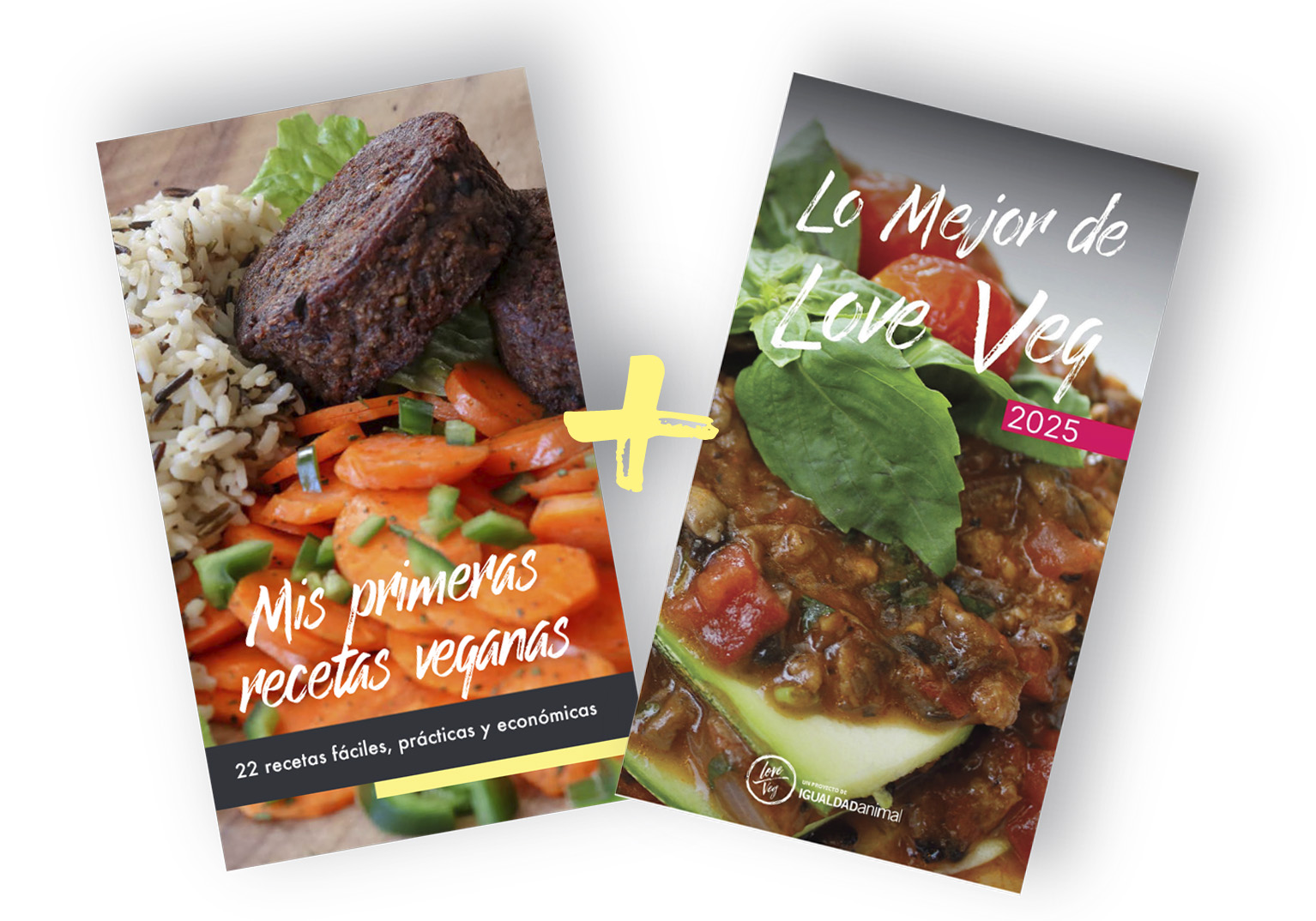 Y recibe totalmente gratis nuestro recetario “Mis primeras recetas veganas” que contiene 22 recetas para comenzar a dar tus primeros pasos y puedas poner en práctica nuestros consejos. Más un recetario con lo mejor de Love Veg en el 2025.