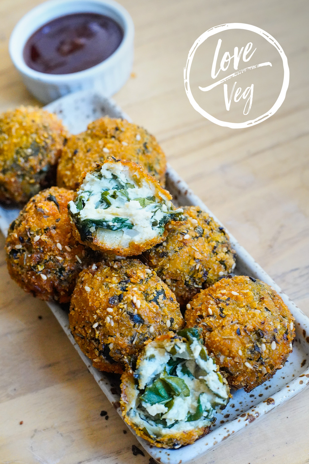 Pasa una bolita en la maicena diluida en agua y enseguida al pan condimentado y empaniza muy bien, repite este proceso hasta terminar con las bolitas. Fríelas hasta que doren, prepara un plato con papel absorbente. Pásalas por papel absorbente y sirve.
